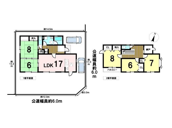 | 土地面積 | 公188.71㎡(57.08坪) | 接道 | 東側(公道)幅 約6.0m 間口 約11.07m 南側(公道)幅 約6.0m 間口 約12.37m |
